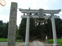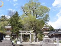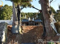 鎌宮諏訪神社(かまみやすわじんじゃ)は 社頭に鳥居がありますが 社殿や本殿はありません 境内に玉垣が巡らされたご神域があり その中に御神体として 御神木「タブの木」が祀られています この御神木には 特殊な「鎌打ち神事」という神事があり その祭典は「日足鎌」とも「左鎌」とも呼び 2丁の鎌を タブの神木に打ち込む神事です 由来は 神代の昔 大巳貴命〈大国主命の別名〉と少彦名命の2柱神と力を合わせて 御祭神の建御名方命(タケミナカタノミコト)〈大巳貴命の御子神〉が この鎌で道を開いて 村人を苦しめていた毒蛇や化鳥を退治したことにちなむとされます