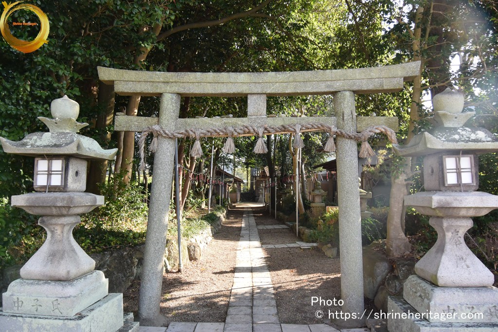 氏子区域及戸数 下梶原、安徳、東、仲村、五郎丸、今光、松木、中原、西、後野、道善、谷口 四百五十戸境内神社 神武天皇社(神武天皇)、薬祖神社(少名彦命)、六一神社(不詳)、菅原神社(菅原道真)、田神社(埴安彦命、埴安姫命)、地禄神社(埴安姫命)