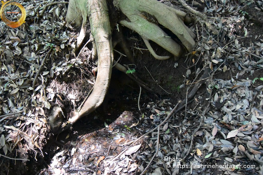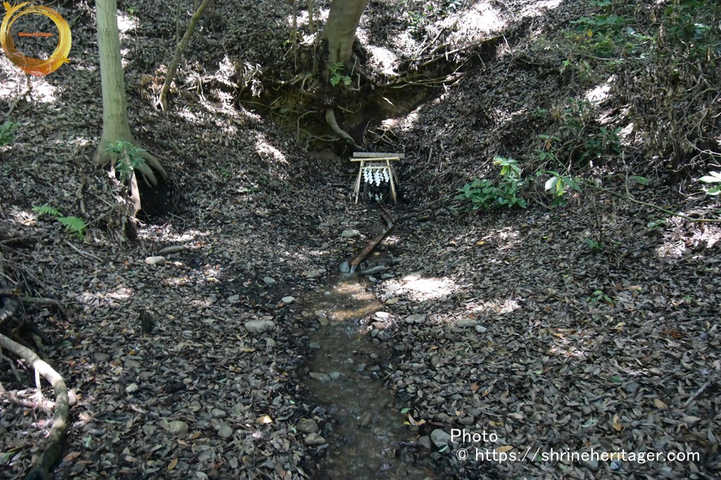 かつては ここには湧水地〈内径一尺(30センチメートル)程の穴〉があり 〈水引祭での 御神体を奉安した場所〉と云う