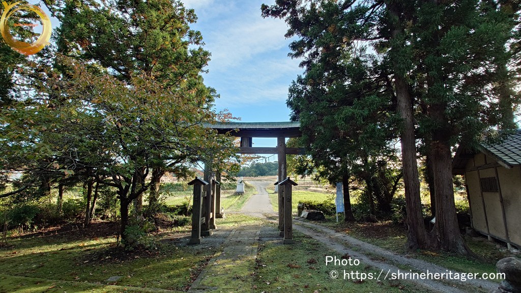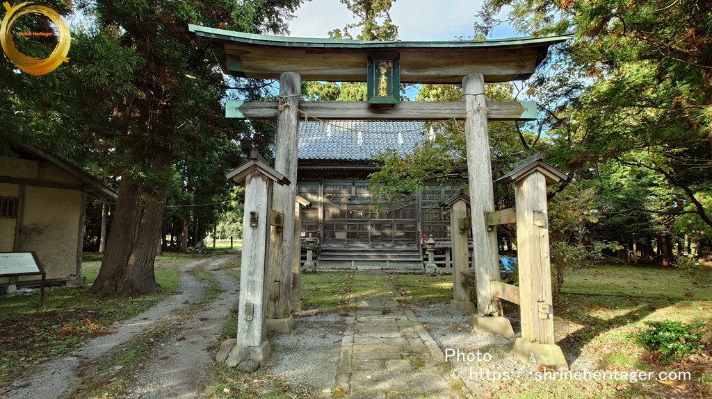 木製の両部鳥居が建ち その先に拝殿が建てられています