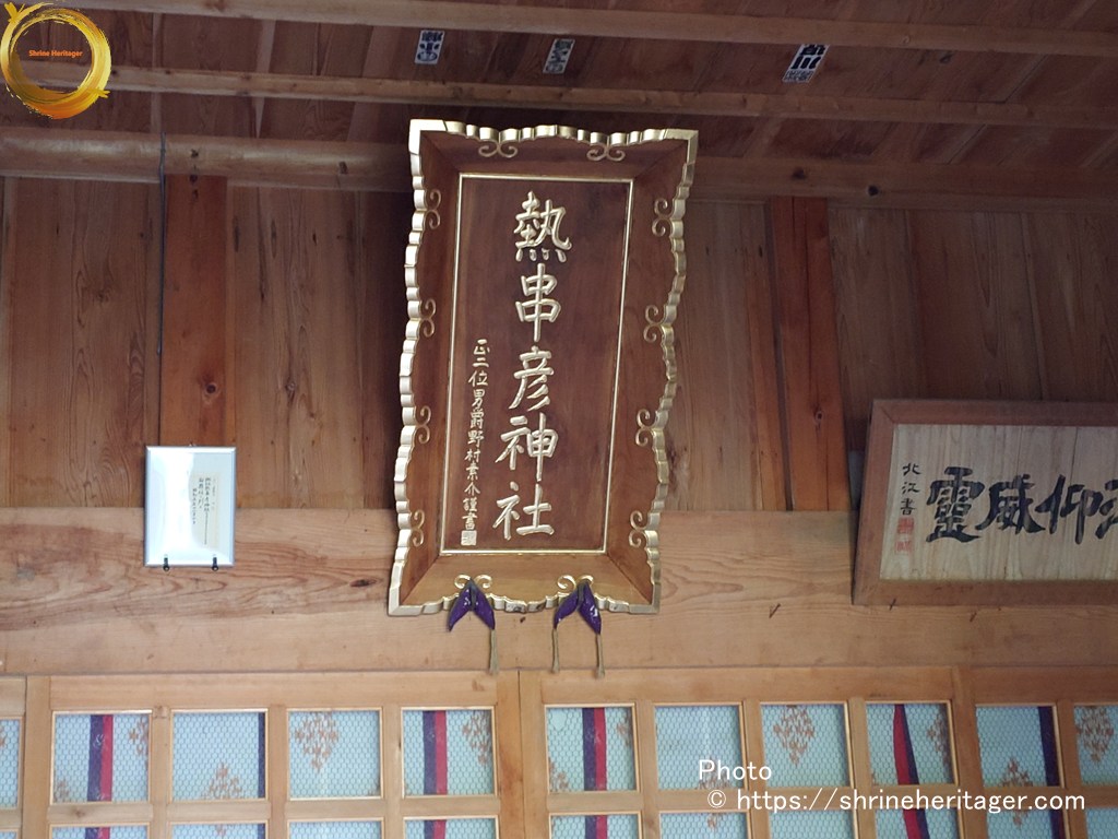 熱串彦神社は清和の朝 創建せられ式内神社九社の内第九に属す、正徳四年八月再建せりと、昔時は長江川の上流 川崎と云ふ所に在しを現地に移せし由なるも其年代は明らかならず〔古記に又 水の尾明神とも云ふと見え、又 寳暦帳に天和二年社建立、正徳四年八月三日本社、翌年四月二十六日前殿成就、同六月九日遷宮と見ゆるに現地に遷座せるをいへるものの如し〕(延喜式阿都久志比古神社に作る)