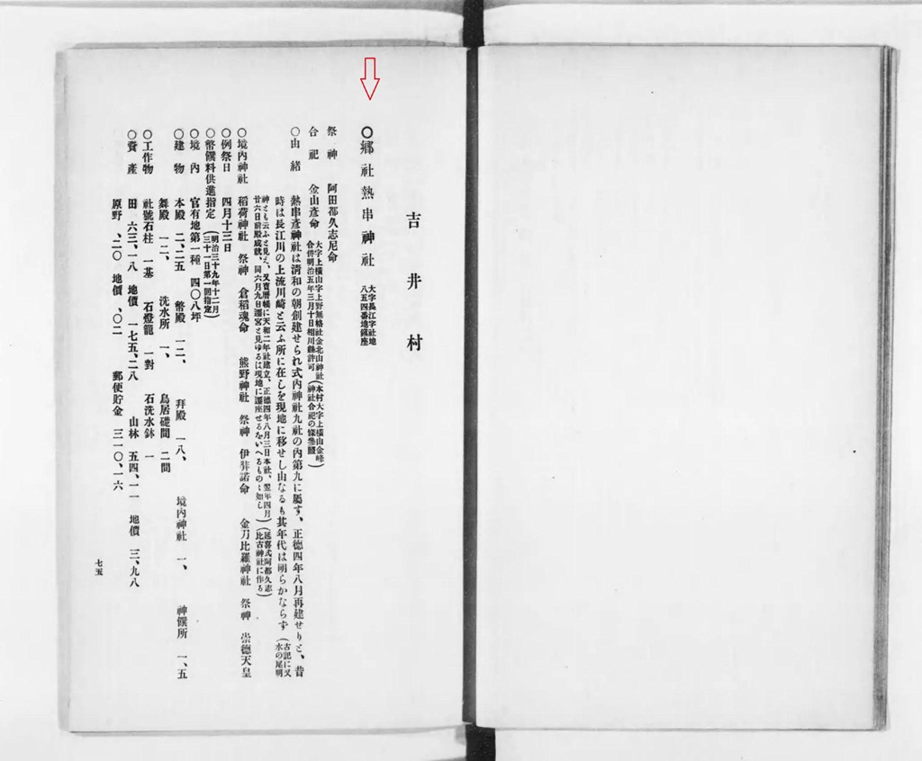 祭神 阿都久志比古命〔明細帳に熱串彥神社 祭神 阿田都久志尼命とあり 此神社ならんか郷社