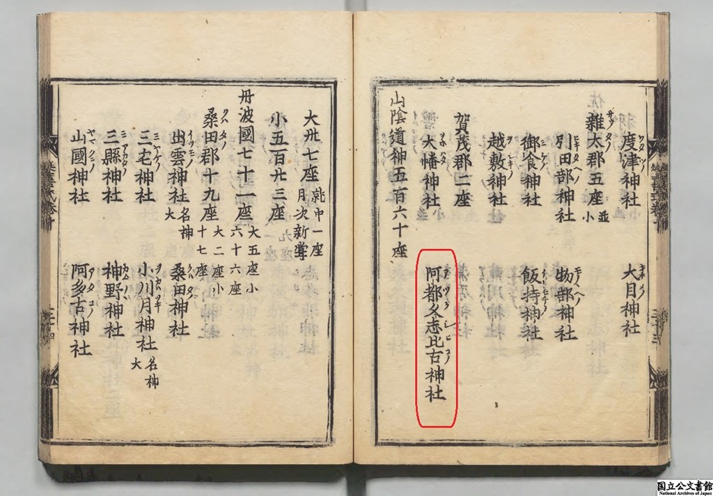 ・『延喜式神名帳engishiki jimmeicho 927 AD.所載社