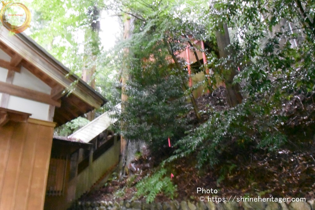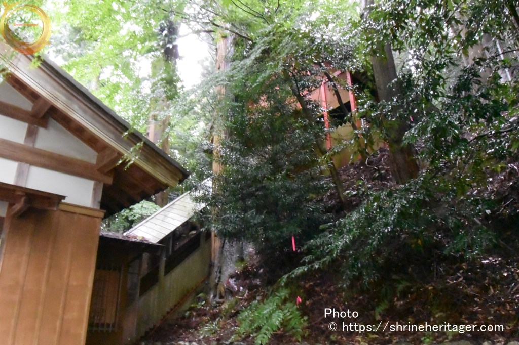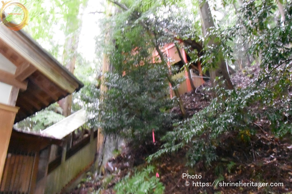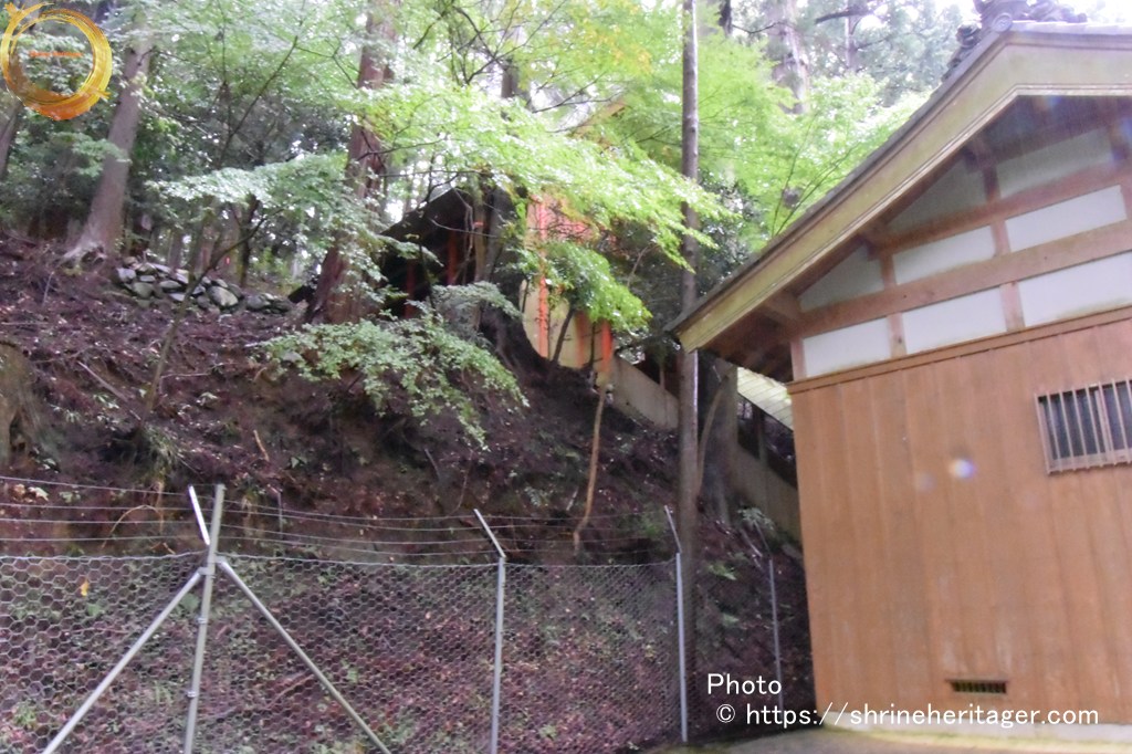 社殿は「笠取山」麓の北側斜面に鎮座しており 拝殿の後ろは かなりの傾斜があります