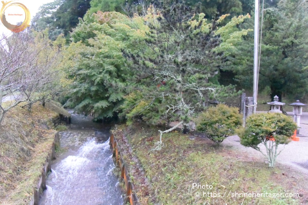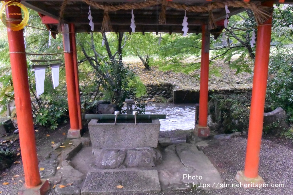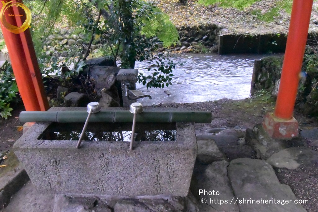 参道の脇を流れていた小川は 社頭の横に流れていて 手水舎からユリられるようになっています 当日は雨で増水していましたが 普段は清流が流れているのであろうと想います