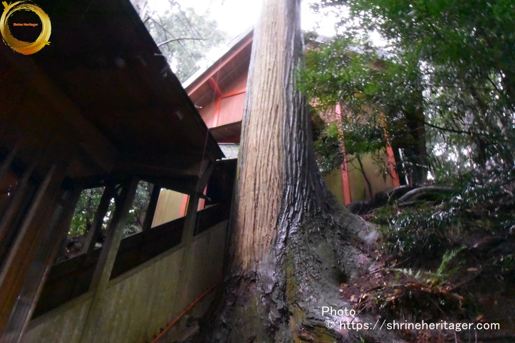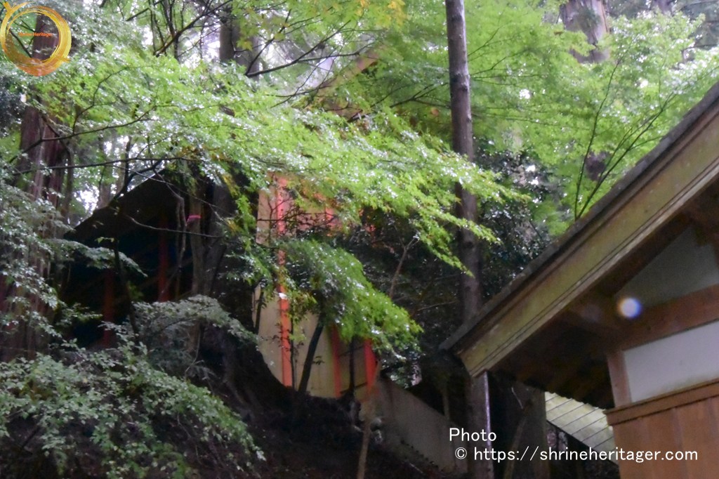その斜面に沿って渡殿〈階段〉が本殿の覆い屋へと続いています