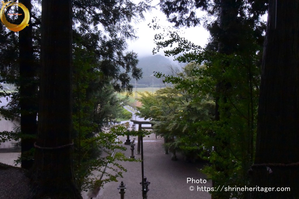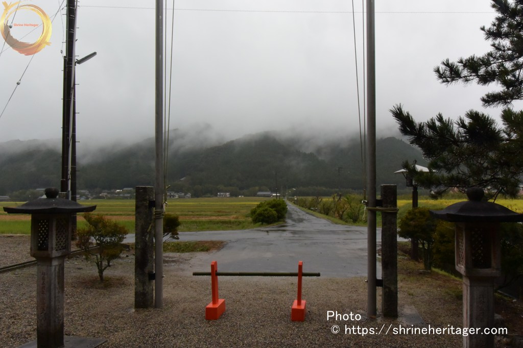 参道の先に見えている山は 「服部川」 の対岸にある西教山であると思います