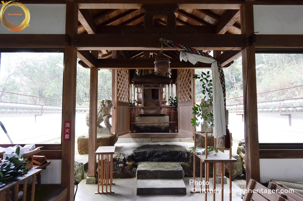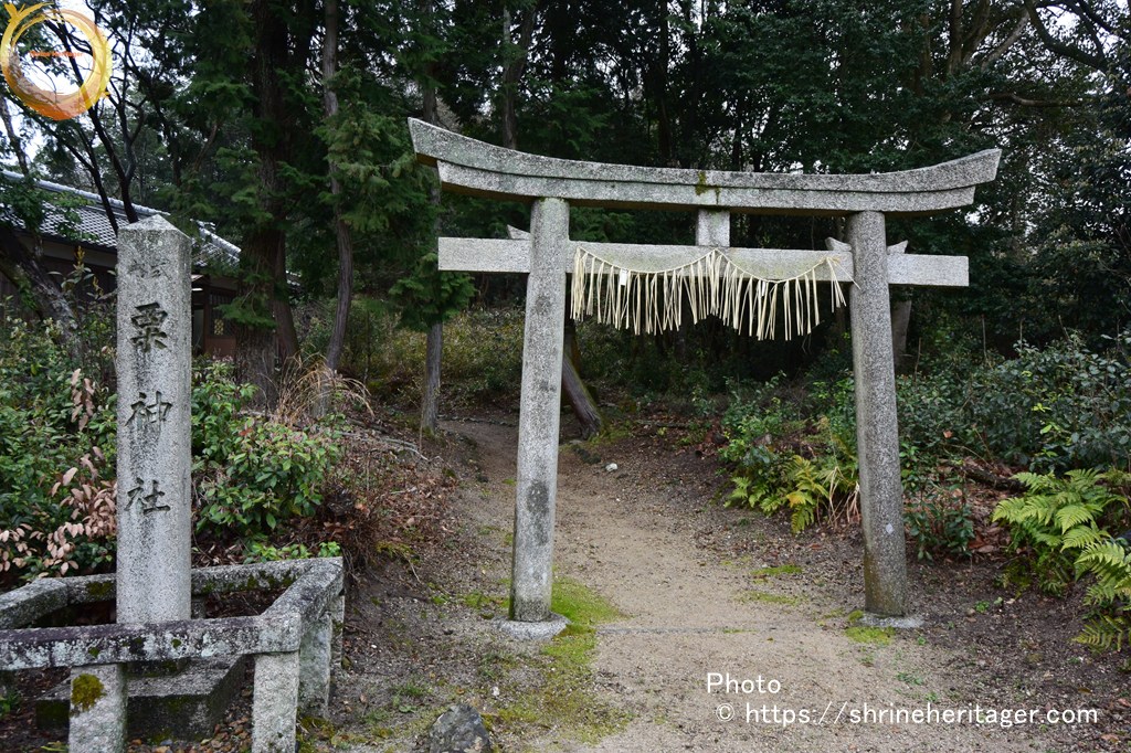 粟直の氏神社。山麓を利用した社叢を有する。祭神は少彦名尊。明治10年延喜式内になる。古代は今の社より東へ5、6町の松尾の鎮座屋敷というところにあった。