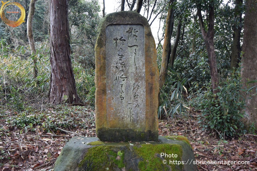 鳥居をくぐり抜けて 細い参道を参道を進むと歌碑がありました