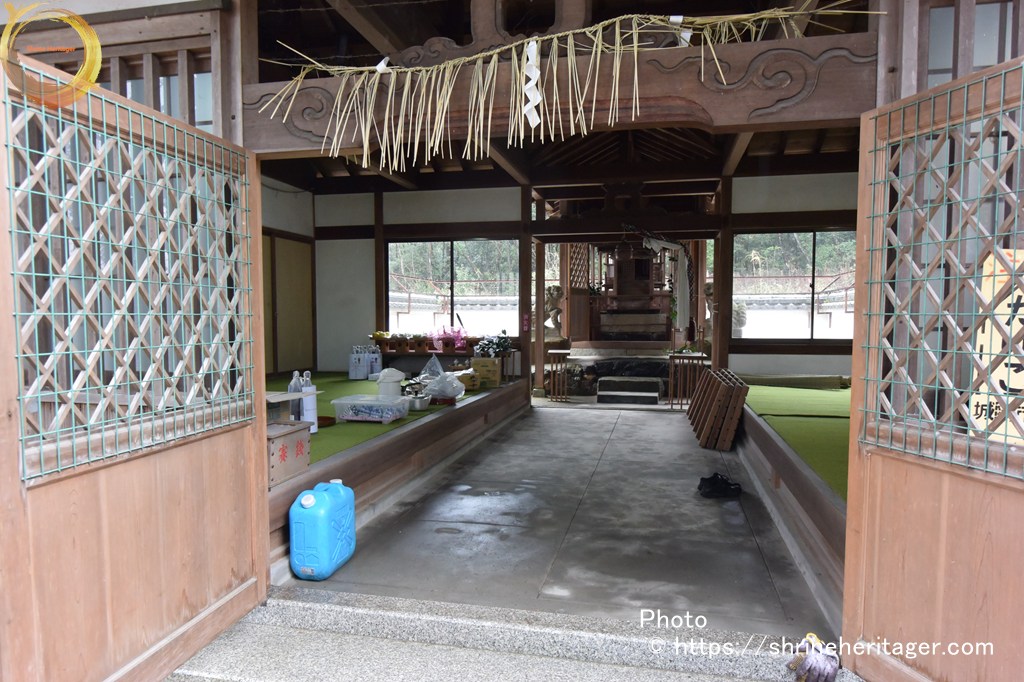 祭事の御準備の中 拝殿に進み入ると 割拝殿となっていて 正面に本殿が鎮座し 本殿の御扉も開かれていました