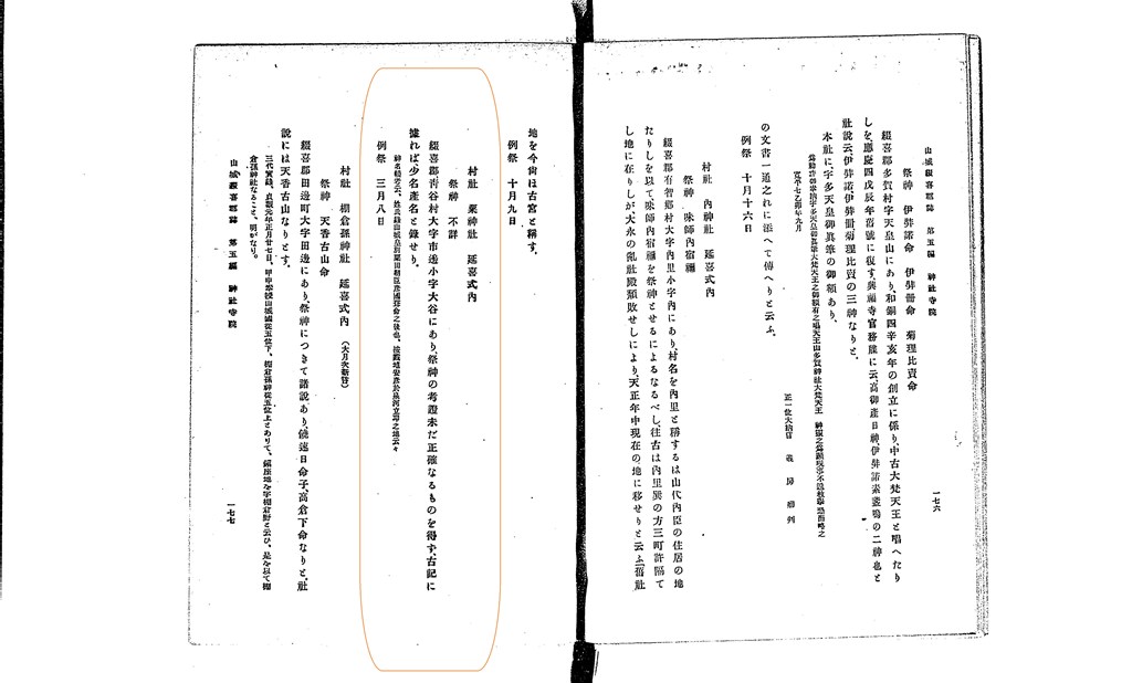 『特選神名牒(Tokusen Shimmyo cho)〈明治9年(1876)完成〉』に記される伝承