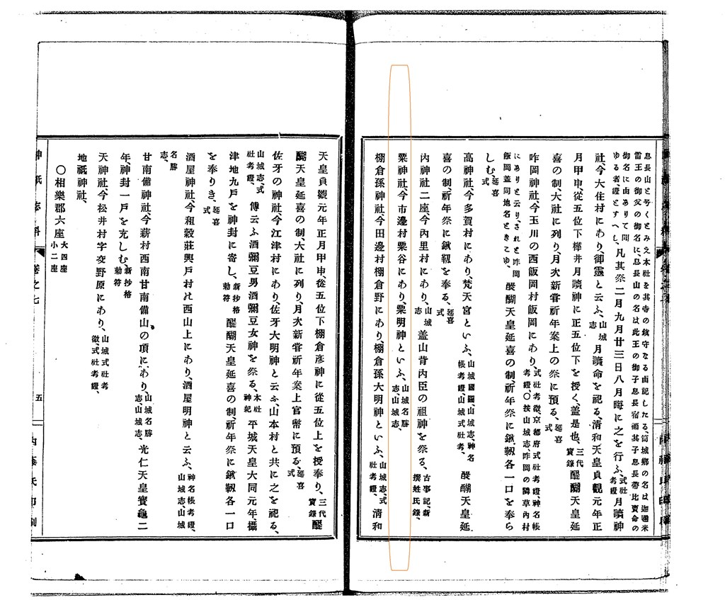 今 市邊村粟谷にあり、粟明神といふ、〔山城名勝志、山城志、〕