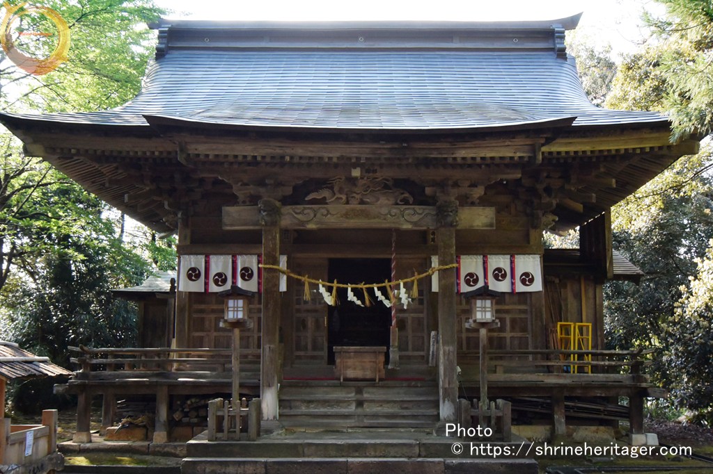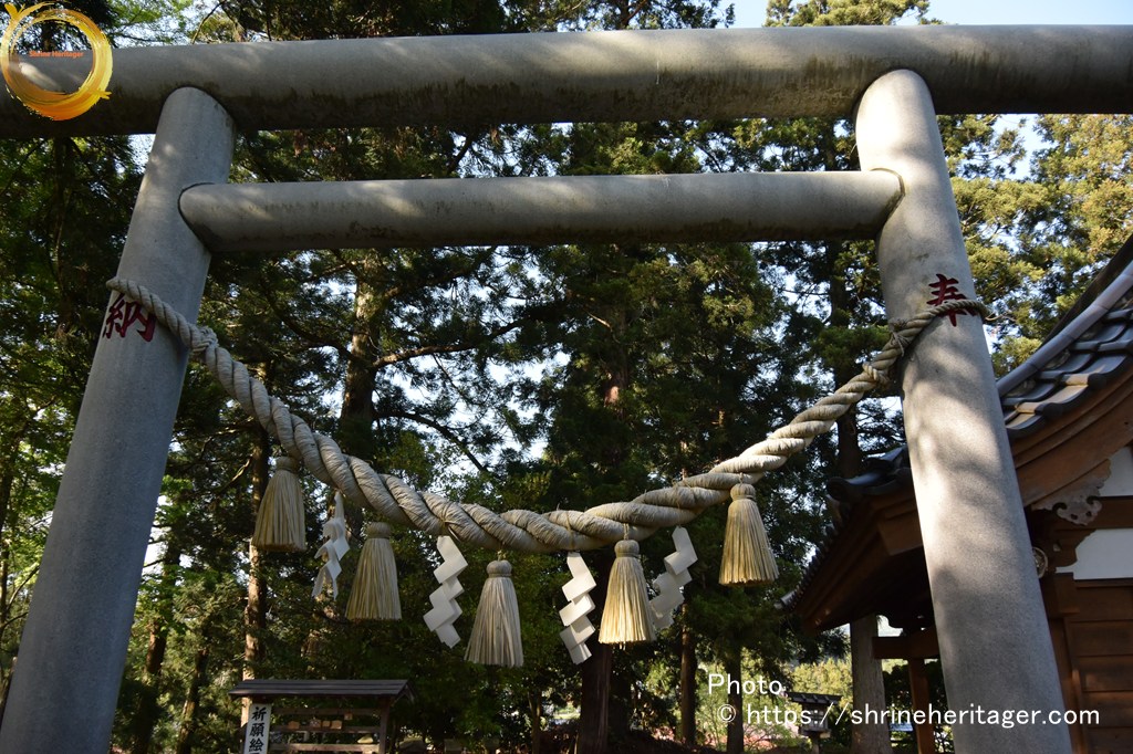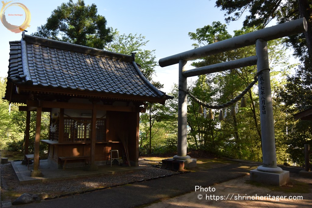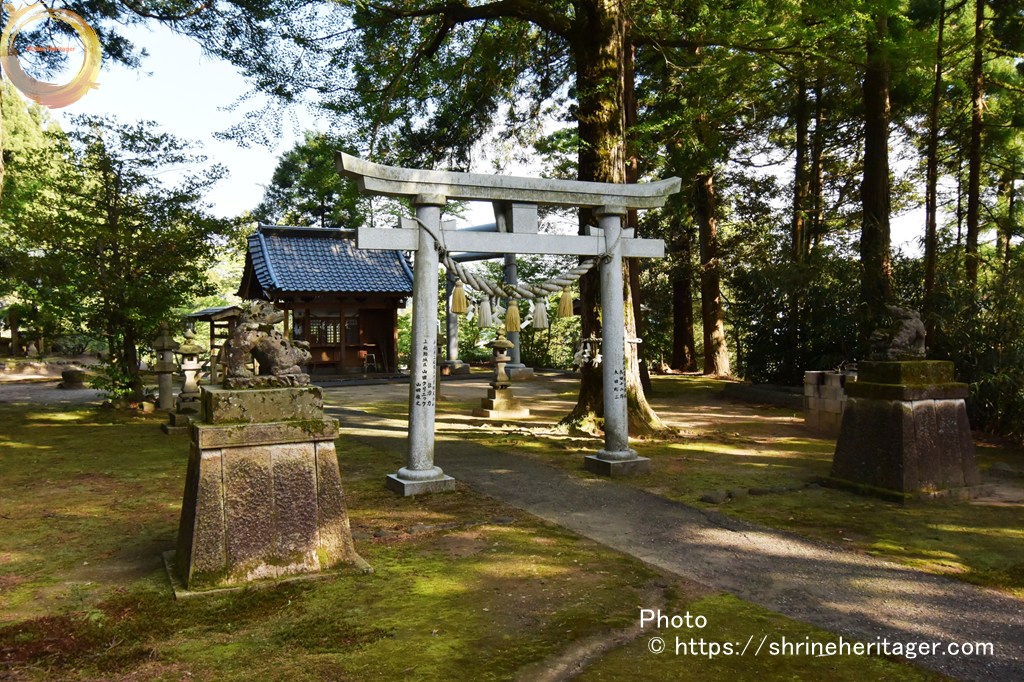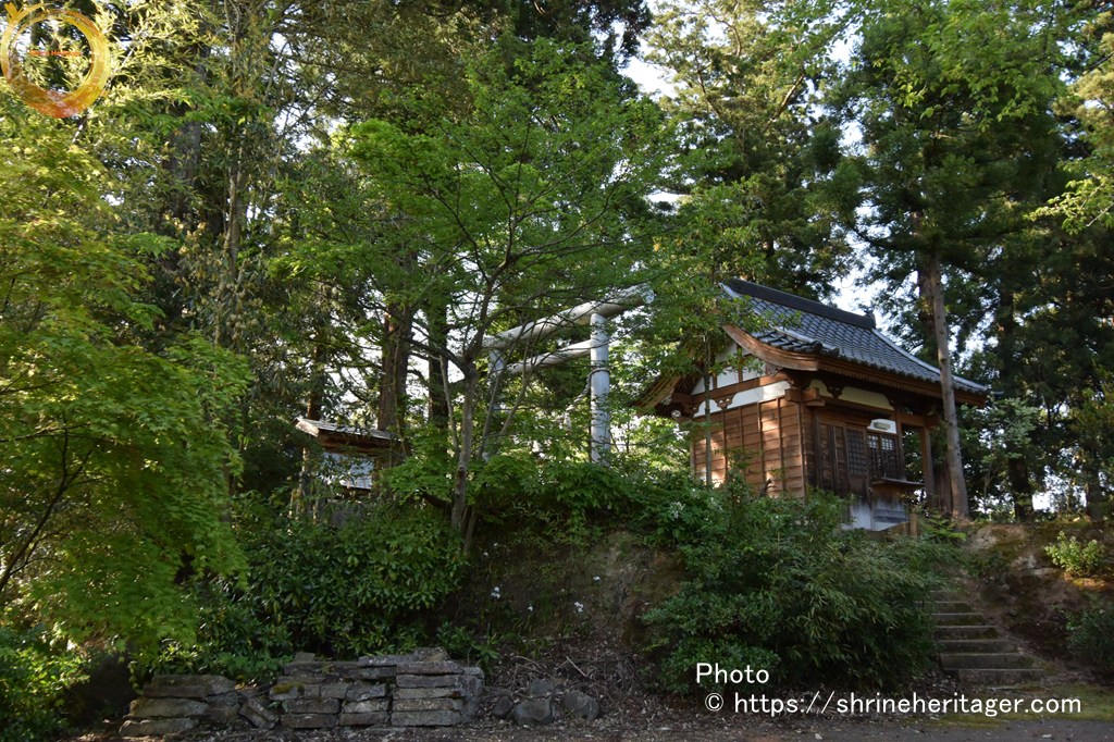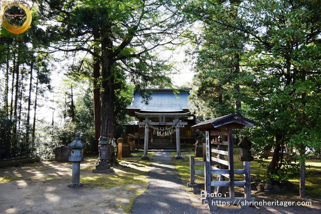後 天文十六年 長尾景虎 當所に築城して祈願文 並に寶劔の奉納ありしが、天明元年七月 本村大火の節 神殿拜殿社庫等類焼し神寶古記等も悉皆烏有に歸せしを、時の神主 大和氏子信徒に謀り天明五年四月神殿拜殴を再建し、又 寶劔の燒残りたるを拾集して先きの御劔を模造して之を納めたり、嘉永八年五月社殿改築 卽現今のもの是なり、明治六年村社に指定せられ、同四十年十ー月十九日字城澤に鎭坐ありし日枝神社を合祀す。