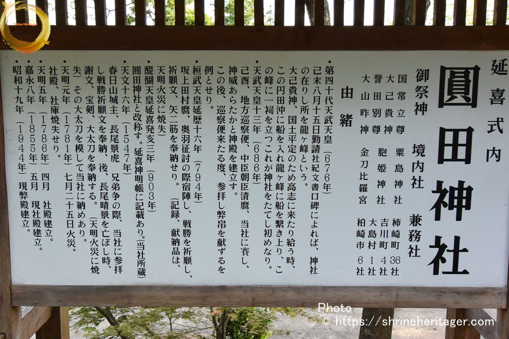 圓田神社と改称す。延喜神明帳に記載あり。(当社所蔵)・天文十六年(1547年)