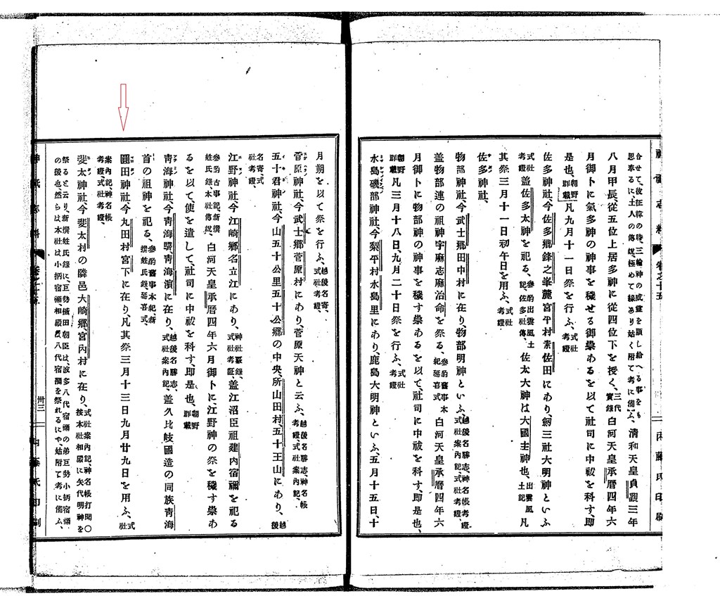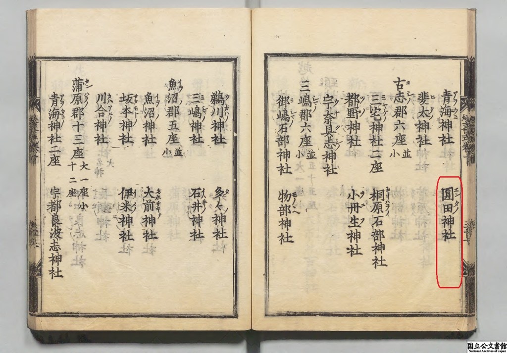 その中でも巻9・10を『延喜式神名帳(Engishiki Jimmeicho)』といい 当時〈927年12月編纂〉「官社」に指定された全国の神社(式内社)の一覧となっています