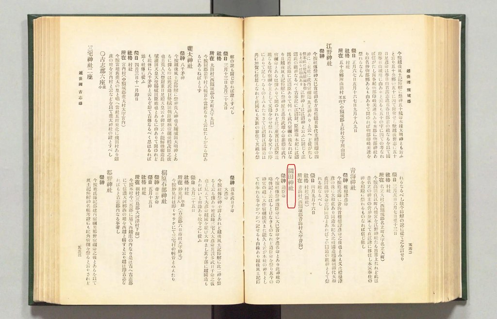 式内社 圓田神社について 所在は゛名立谷丸田村に在す゛〈現 圓田神社(上越市名立区丸田)〉と記しています