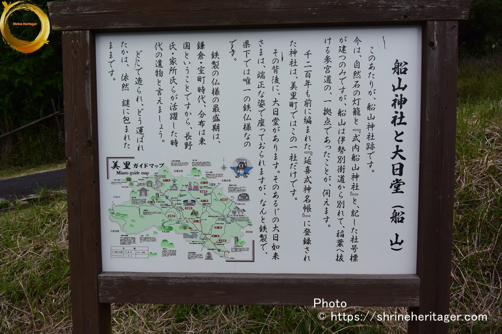 船山神社 古社地(ふなやまじんじゃ こしゃち)は 延喜式内社 伊勢國 安濃郡 舩山神社(ふなやまの かみのやしろ)の旧鎮座地です 明治四十一年(1908)字内各社を船山社に合祀して 村社に列しましたが 明治四十一年(1909)九月十八日 辰水神社(津市美里町家所)へ合祀されて 現在に至ります