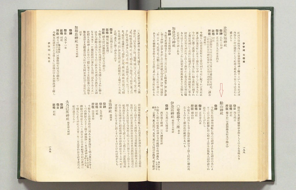 式内社 船山神社について 所在は゛船山村に在す、゛〈現 船山神社 古社地(津市美里町船山)〉と記しています