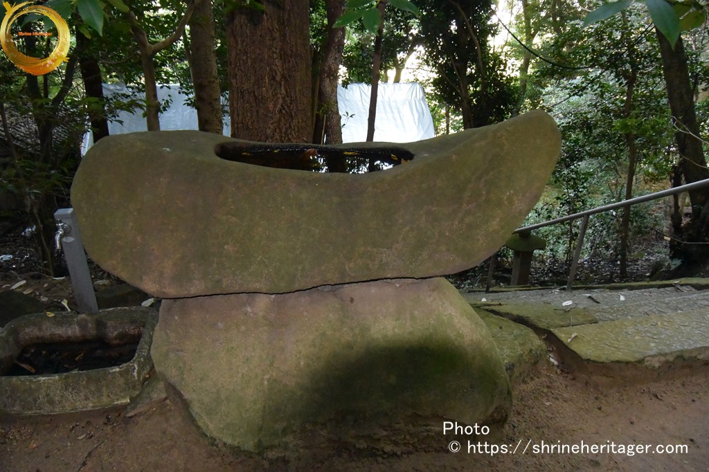 『神祇志料』に前述の御神体と伝える鯰石について「山上に三の舟石あり、長さ三丈、其形 舟を覆うに似たり」とある。
