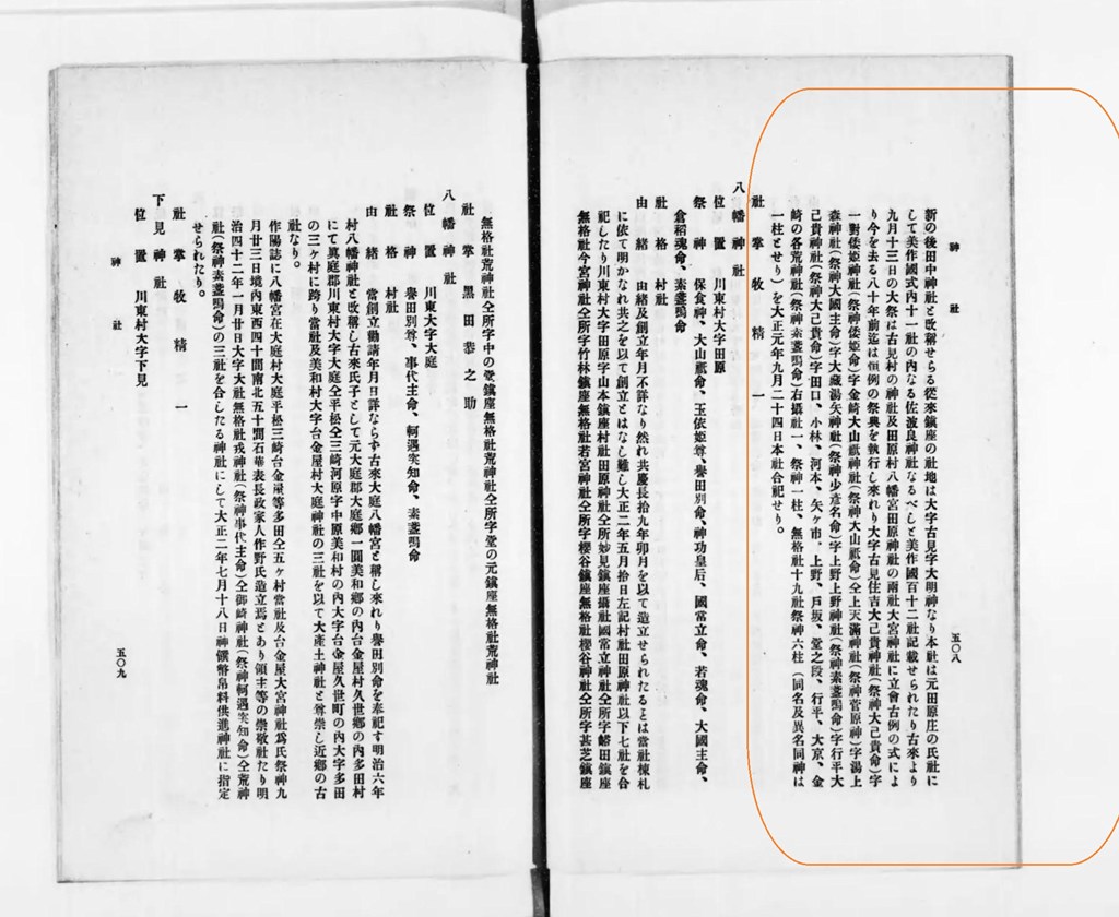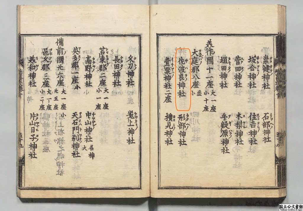 ○大庭郡八座、並小佐波良(サハラノ)神社