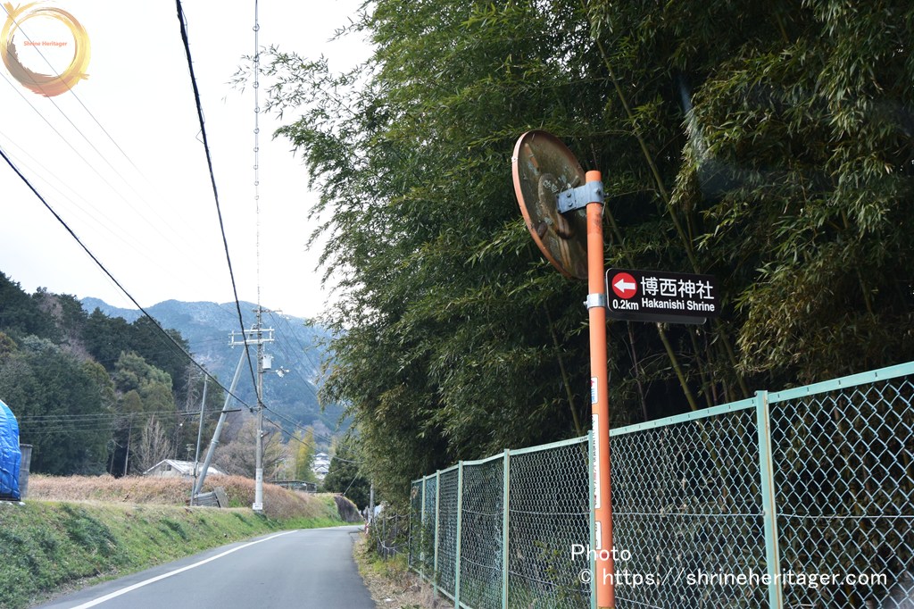 屋敷山古墳のある屋敷山公園を過ぎて さらに西方向へと進むと道の途中に゛博西神社0.2km゛の矢印版があり 左折します