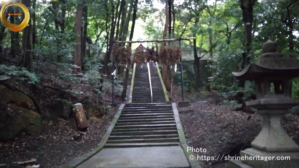 参道石段の途中にあるのは「勧請縄(かんじょうなわ)」です