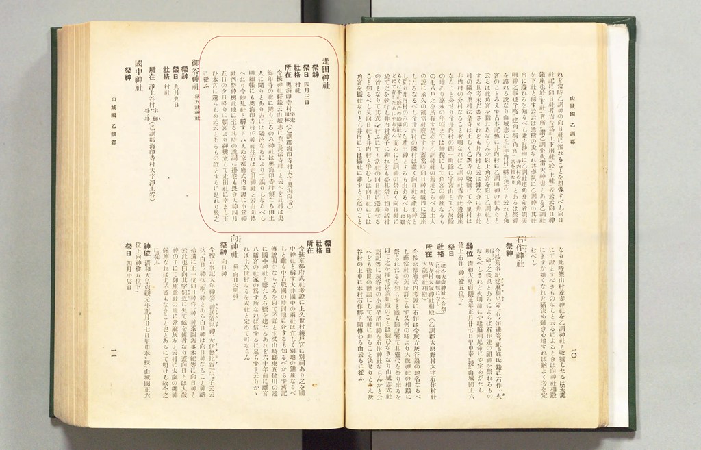 式内社 走田神社について 所在は゛奥海印寺村〔字走田林〕(乙訓郡海印寺村大字奥海印寺)゛〈現 走田神社(長岡京市奥海印寺走田)〉と記しています