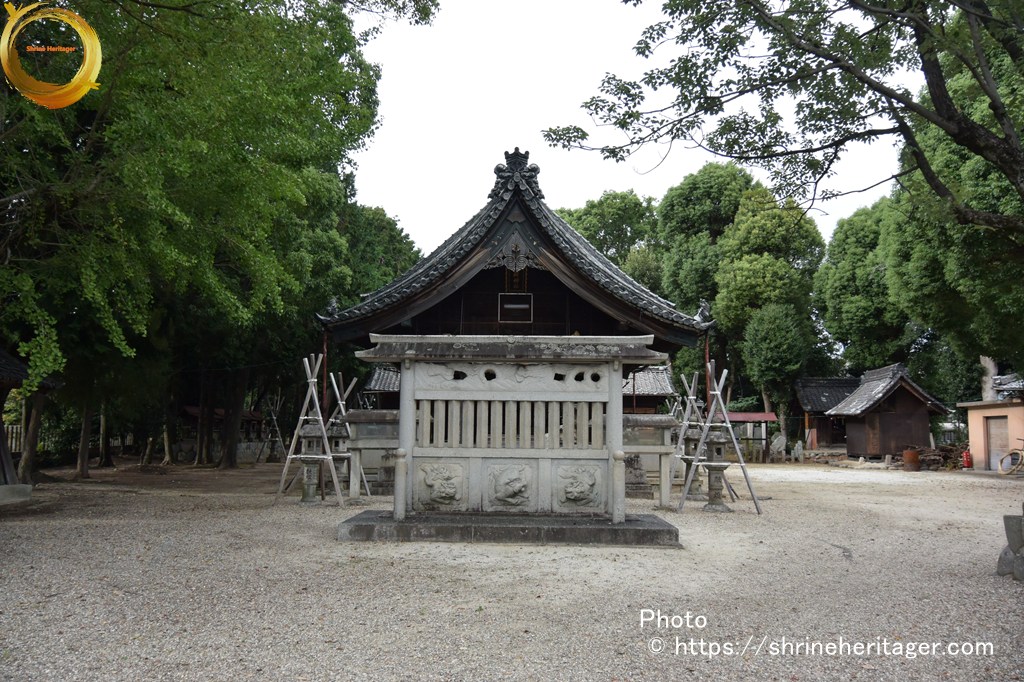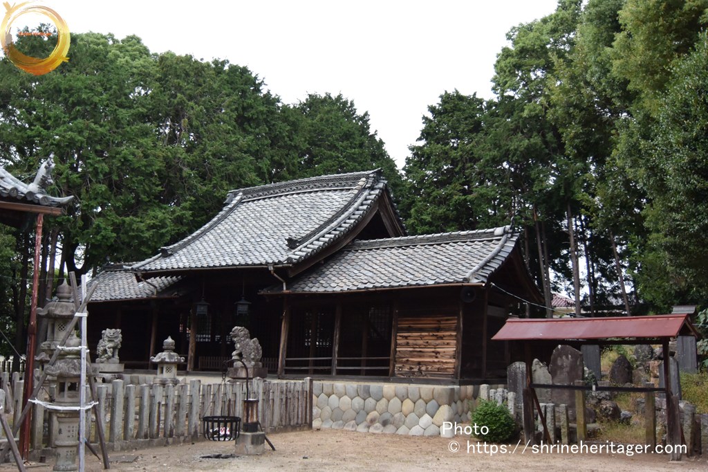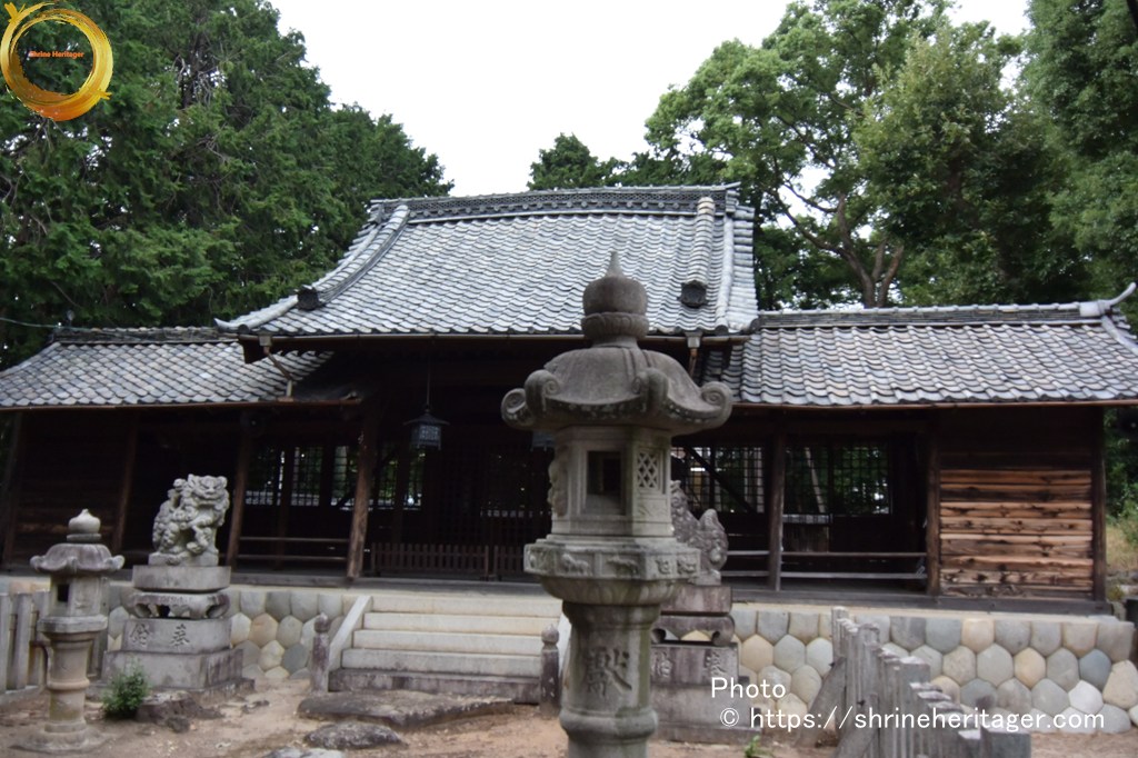 宇麻志麻遲命、高御產巢日神、神御產巢日神、豊受姫神、月讀命、天之常立命大物主神、八剣神を祀れる村社なり。