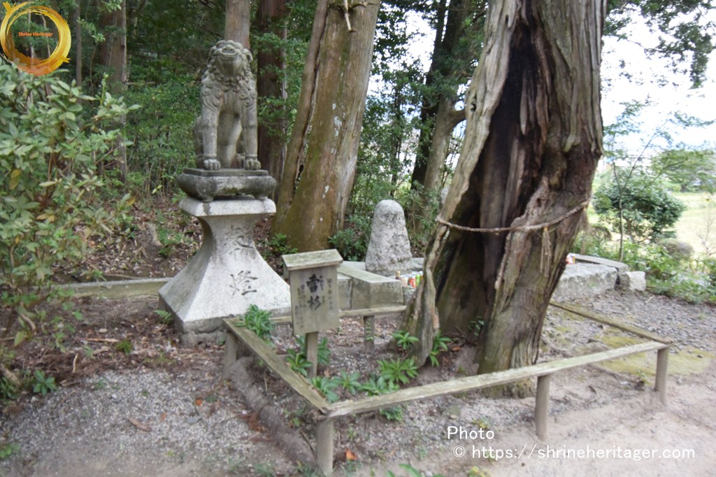 狛犬の手前には「雷杉(かみなりすぎ)」