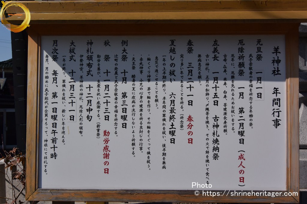 鳥居の手前には 由緒書きと 年間行事の案内板が設置されています