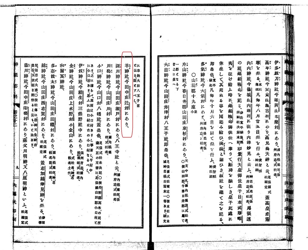 式内社 羊神社について 所在は゛今 田中庄辻村にあり゛〈現 羊神社(名古屋市北区辻町)〉と記しています