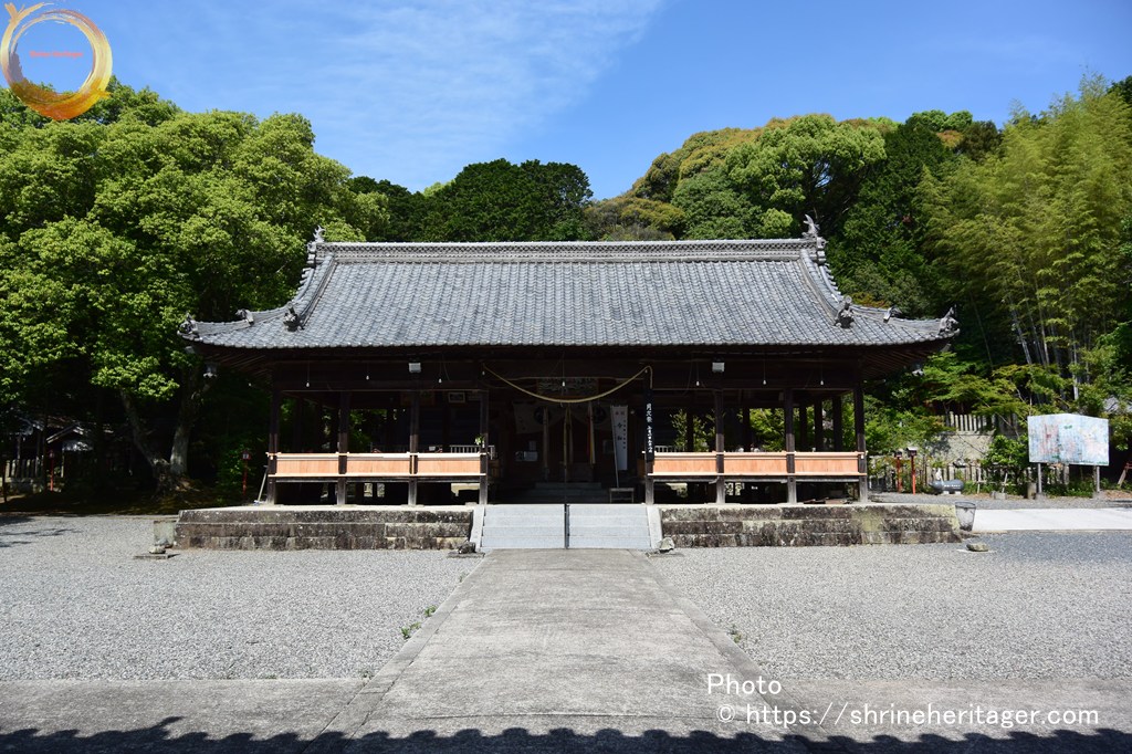 創立年月詳ならず、明治七年二月郷社に列す、社殿は本殿・幣殿、拜殿を具へ、境内地は千四百八十四坪 (官有地第一種 )、三十七年中 内務省指令甲第九六三號を以て、更に上地林反別七反三畝二十七步を編入せらる。