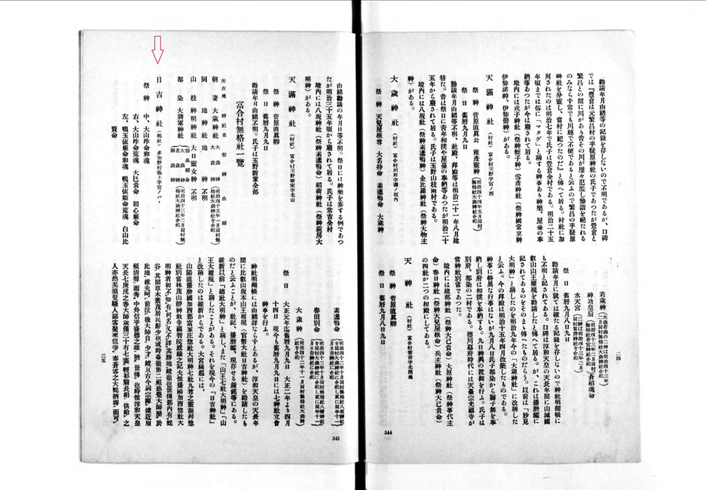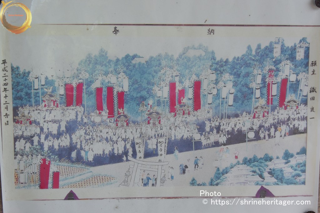 (明治四十二年十一月同村 無格社 大歳神社を日吉神社に合祀)祭日 大正元年迄 舊暦九月九日 大正二年より四月十四日 現今も舊暦九月九日には七神社立會神事を行ふ。