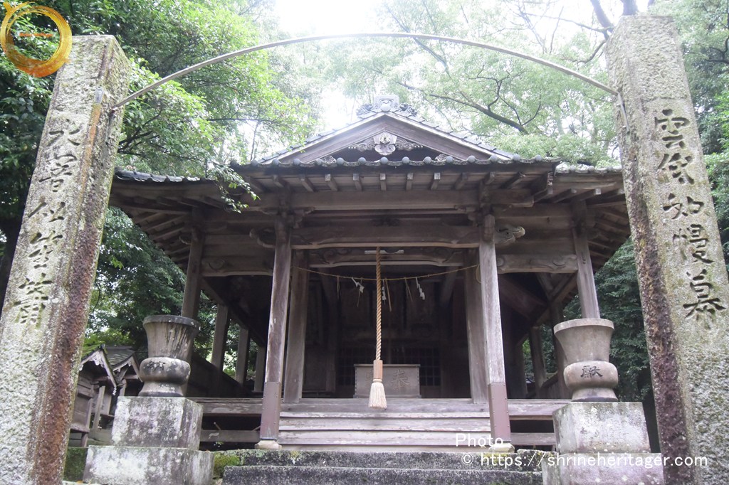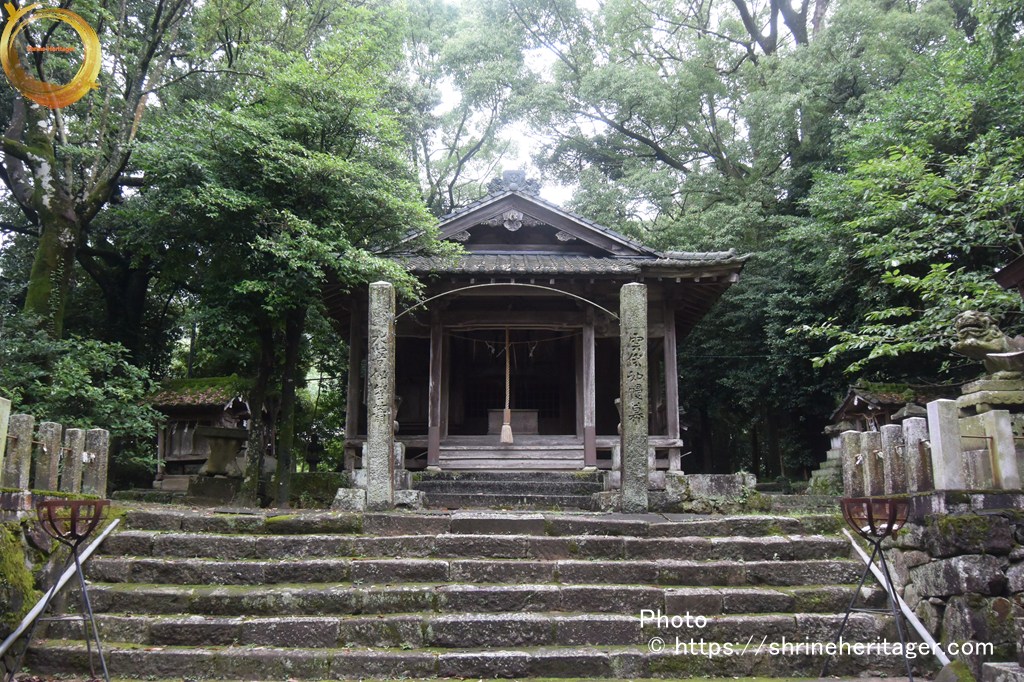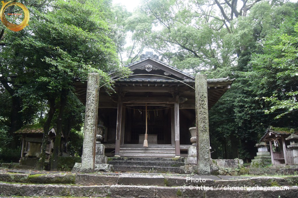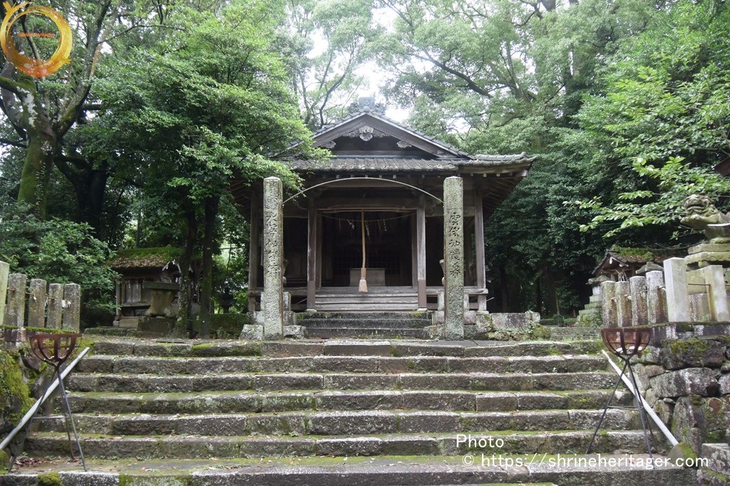 天明乙巳年孟春三月吉日氏子中にて社殿を再興せりと云ふ棟札あり 是れ則ち今の社殿なり 十月十九日は恒例の大祭として神輿を笠懸の遙宮に渡御ありて神楽を奏し笠掛ひ式を執行し其日遷御なる此時 伶人楽を奏して神輿に陪從す其お道路を音楽道と稱す 此の外 年中の祭數多し 祠官神人二十五人ありて是れを執行せしも 弘治三年七月九州の探題大友二十八代の後胤左衞門督義鎭の嫡子義統と申す者邪法に溺れ神社仏閣を沒倒せり。