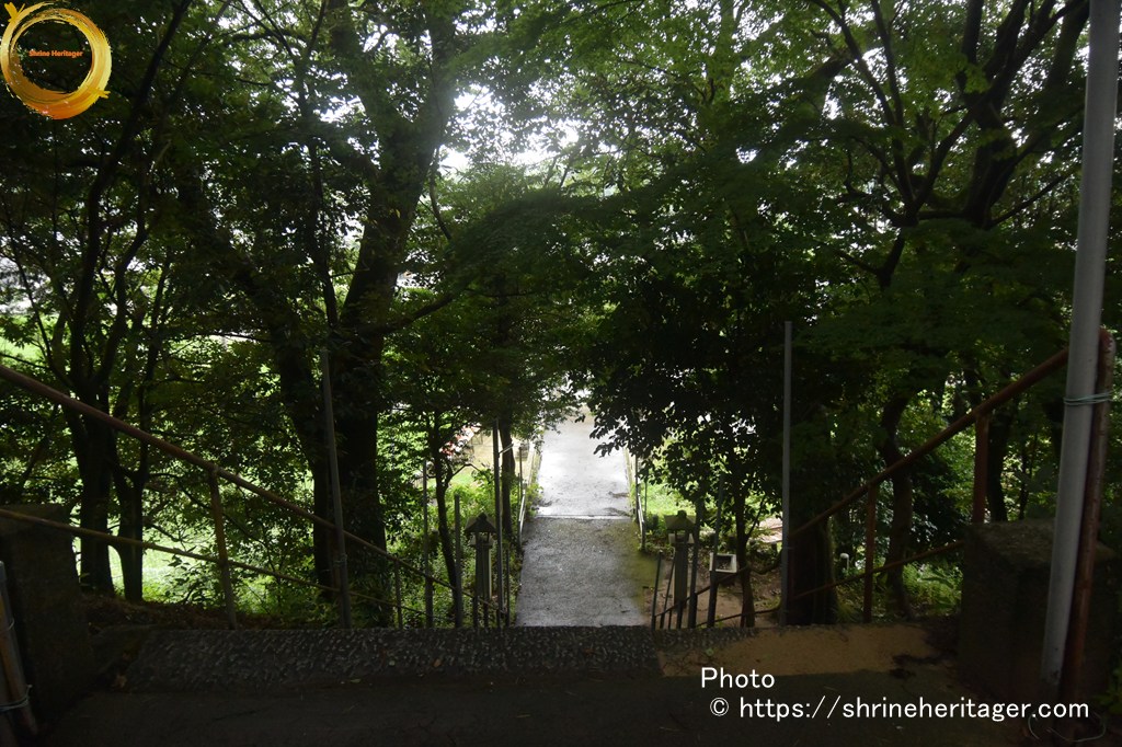 参道は東南方向へ伸びていて R200号沿いの山家小学校の東南角に参道入口があります