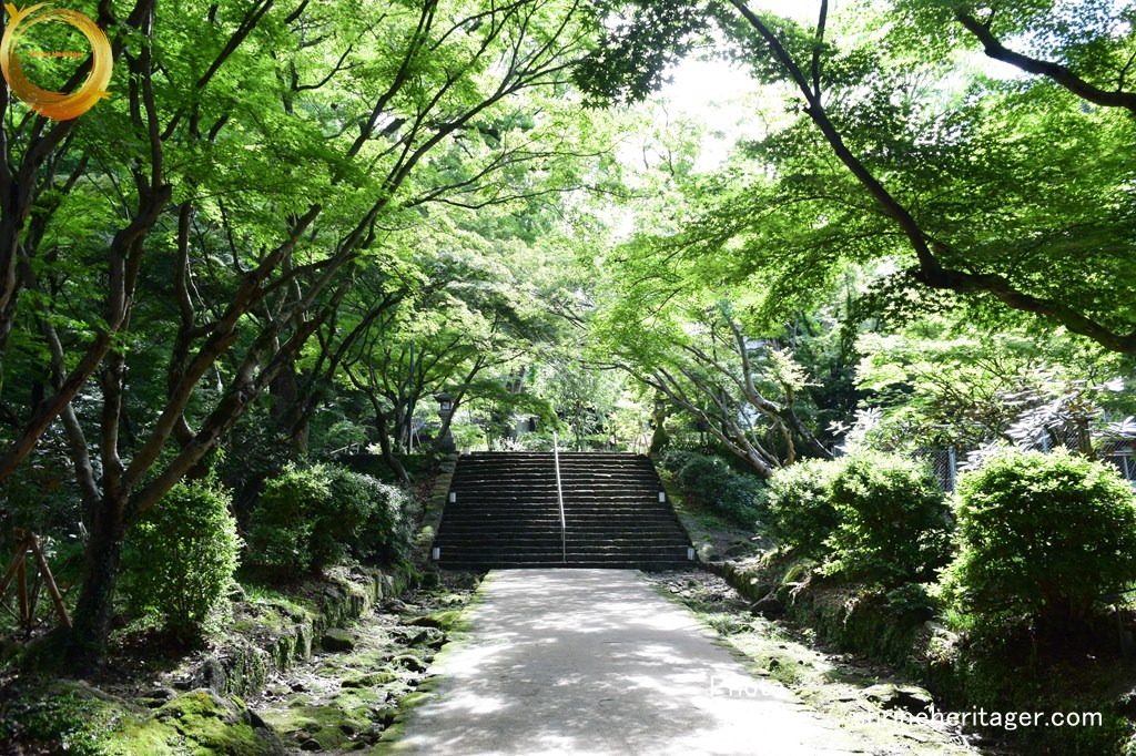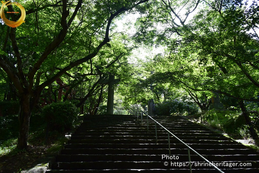 石段を上がると 参道は左に折れていて 再び右へ石段が続いています