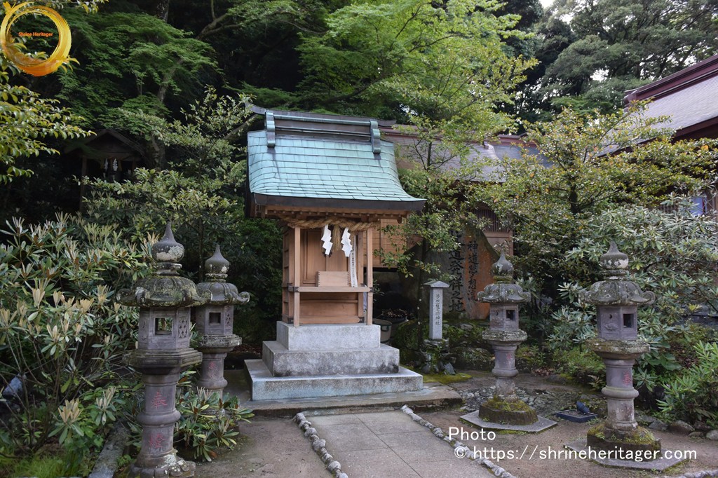 下宮 本殿、幣殿、拜殿、神饌所、齋館社務所主なる寶物 寶満宮御傳記上下二卷、勅額一面、水鏡一面竈山詩稿一冊、唐獅子一個、其他 鳥居五基