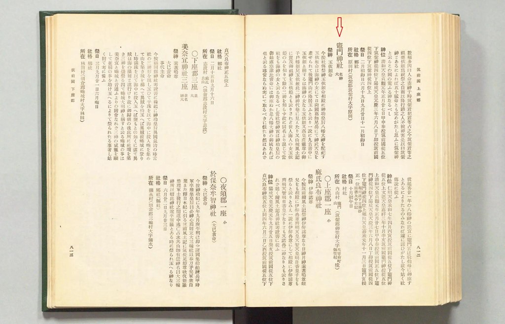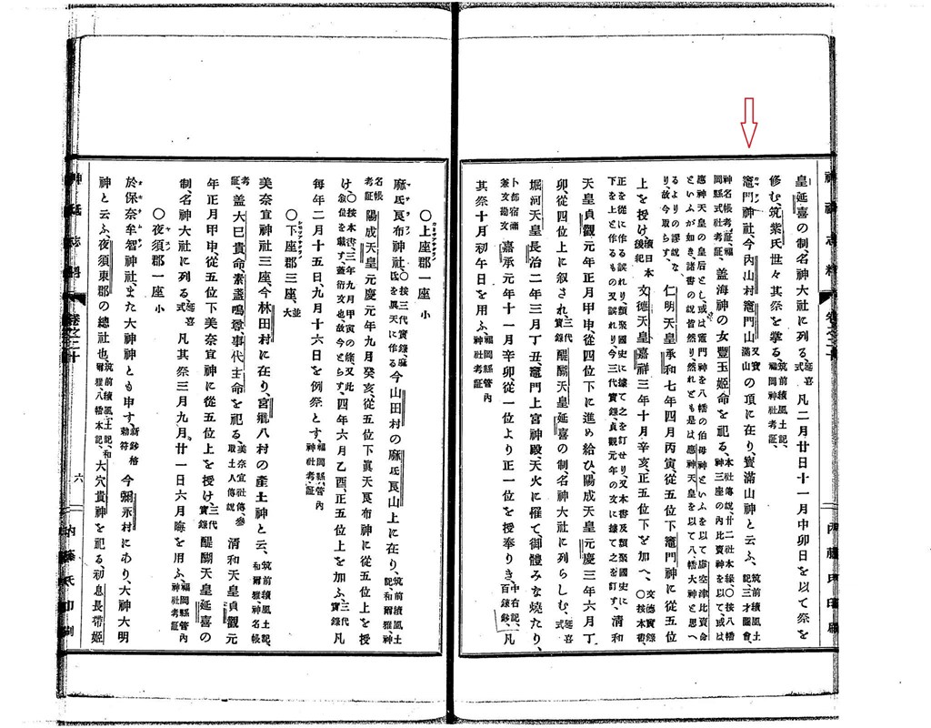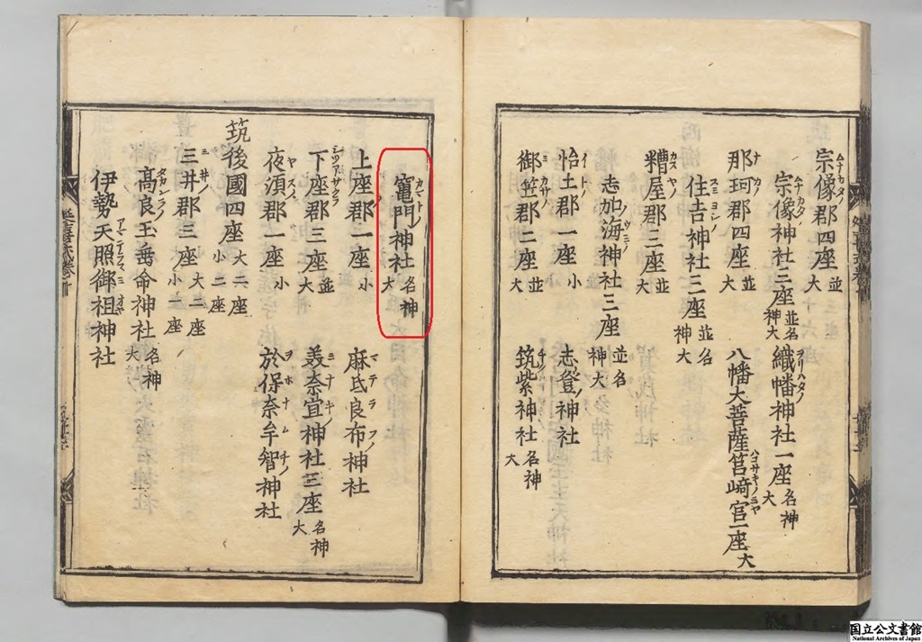 例祭式三、〔臨時祭〕名神祭二百八十五座、〔中略〕筑前國 竈門神社一座、