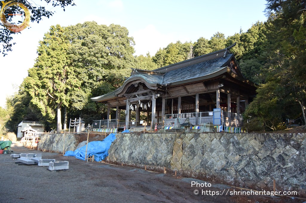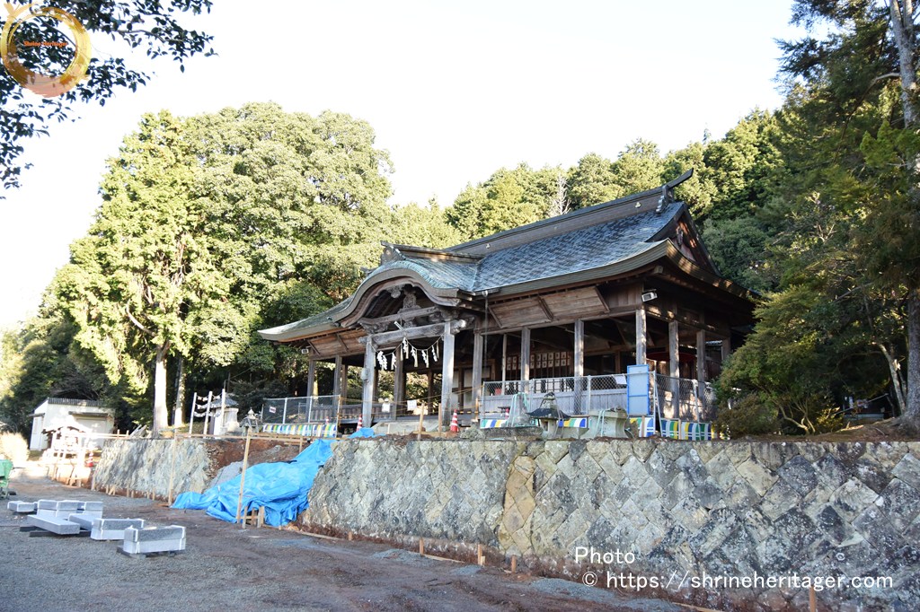 明治七年二月郷社に列す、社殿は本殿、拜殿、實藏、幣殿を備へ、境内地は七百十二坪 (官有地第一種)、三十七年中 内務省指令甲第九五〇就を以て、更に上地林反別八反二十六步を編入せらる。境内神社