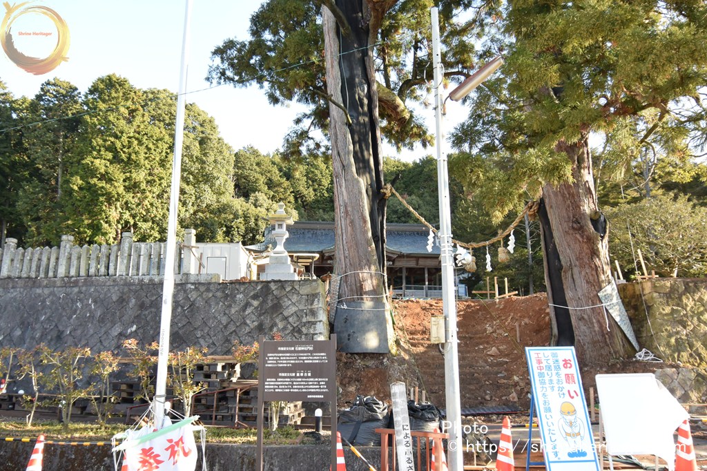 境内への入口となっている 市指定文化財「石部神社(いそべじんじゃ)門杉(もんすぎ)」から境内へは入れません