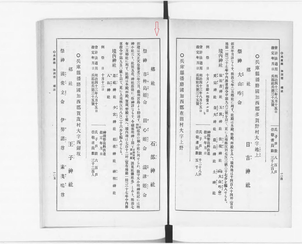 〇兵庫縣 播磨國 加西郡在田村大字上野