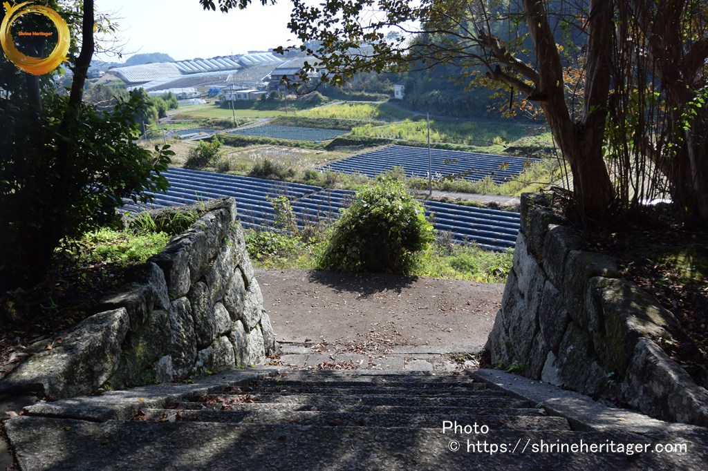 境内を振り返ります 石段を下りようとした時 社前の南側に面して 田園地帯が広がっています