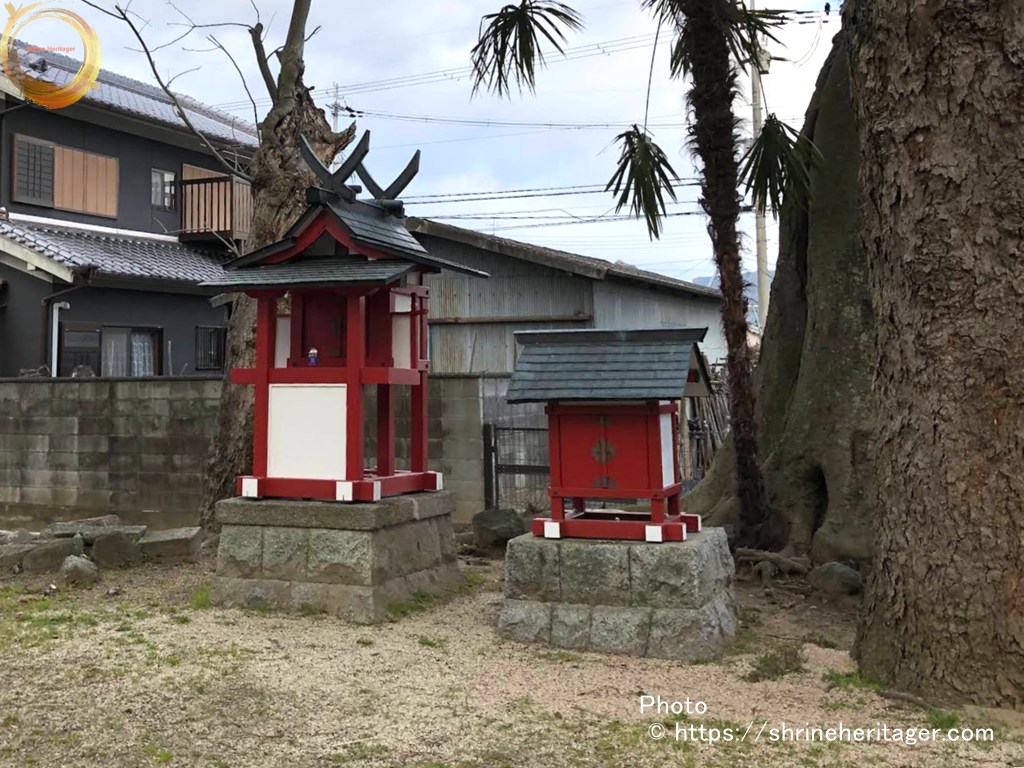 元「子安大明神」であったが、神仏分離後の明治2年(1869)社名を変更したと伝えられる。1間社 隅木入り春日造 銅板葺、千木・勝男木付の社である。