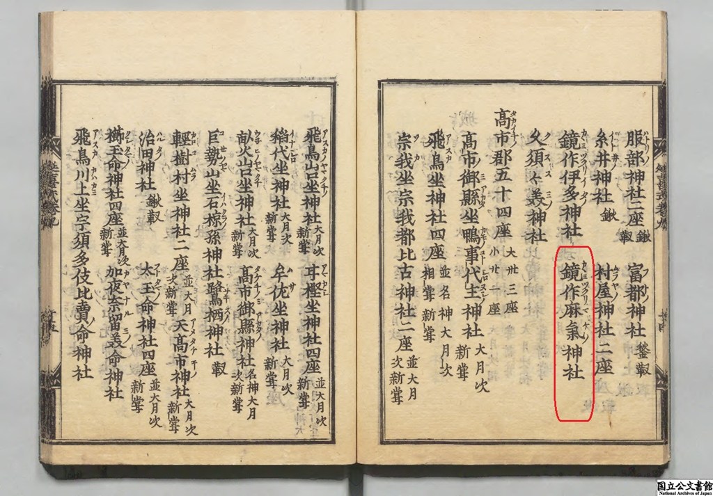 延喜式内社 大和國 城下郡 鏡作坐天照御魂神社(大 月次 新嘗)(かかみつくりにます あまてるみたまの かみのやしろ)