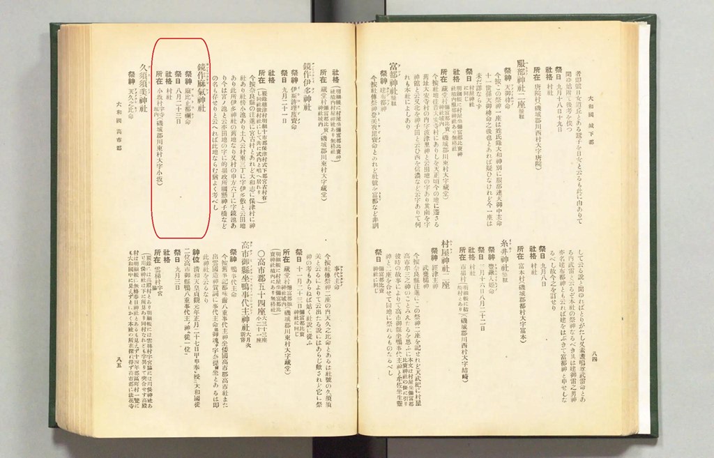 『奈良県史』第5巻 神社〈平成元年(1989)発行 奈良県史編集委員会編集〉 に記される伝承
