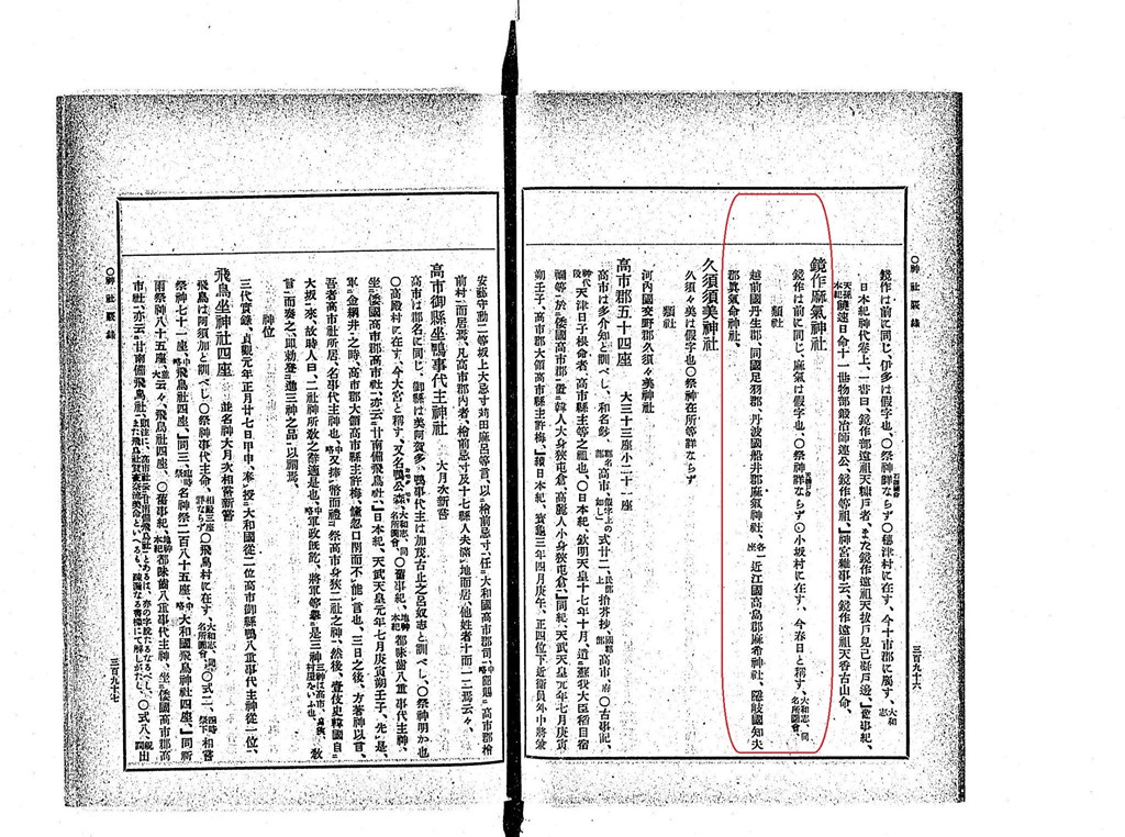 『延喜式神名帳(Engishiki Jimmeicho)』(927年12月編纂)に所載〈This record was completed in December 927 AD.〉