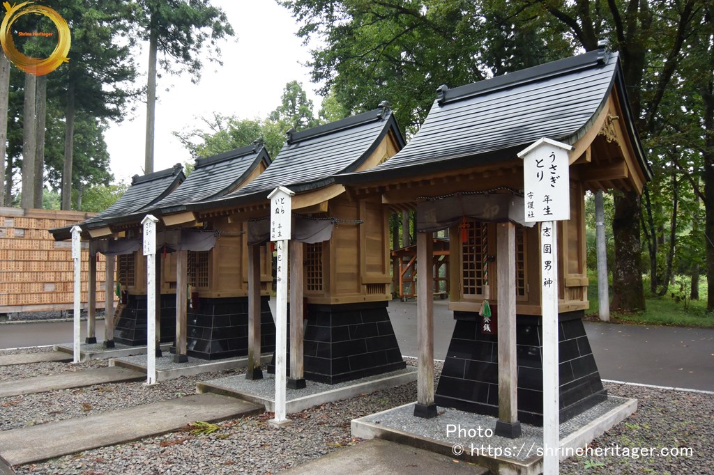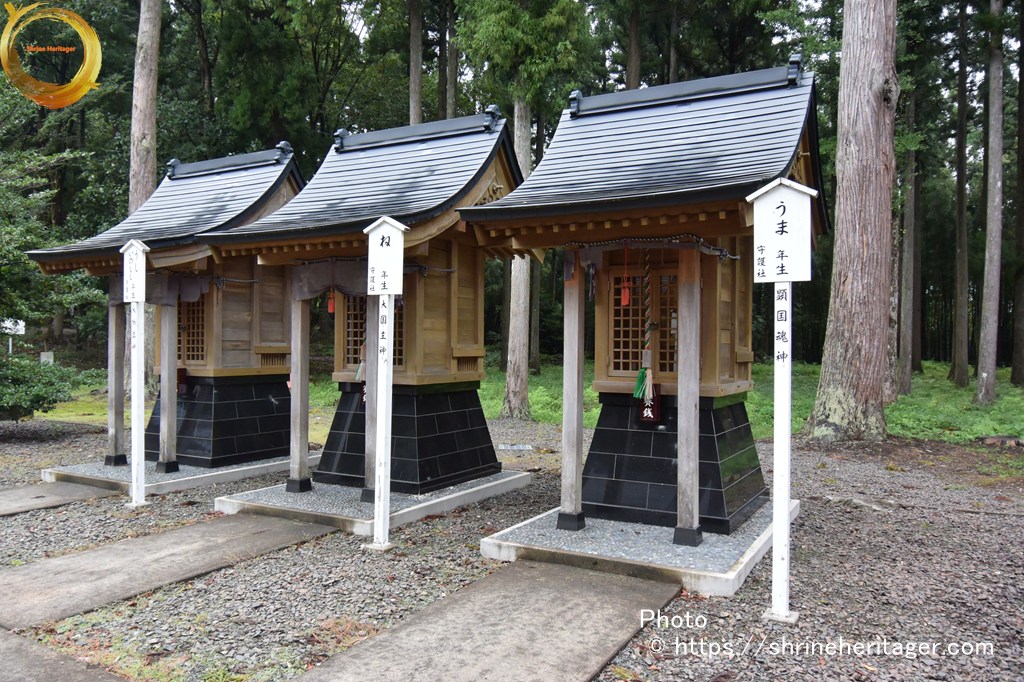 境内に入ると〈拝殿の前〉十二支守護社が7社あります