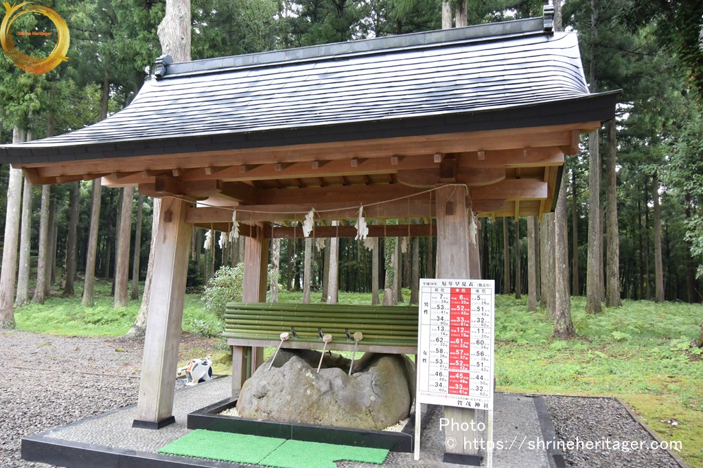 神職は養老元年 神社創建より代々奉仕し現宮司にて四十三代なり。現地案内板より