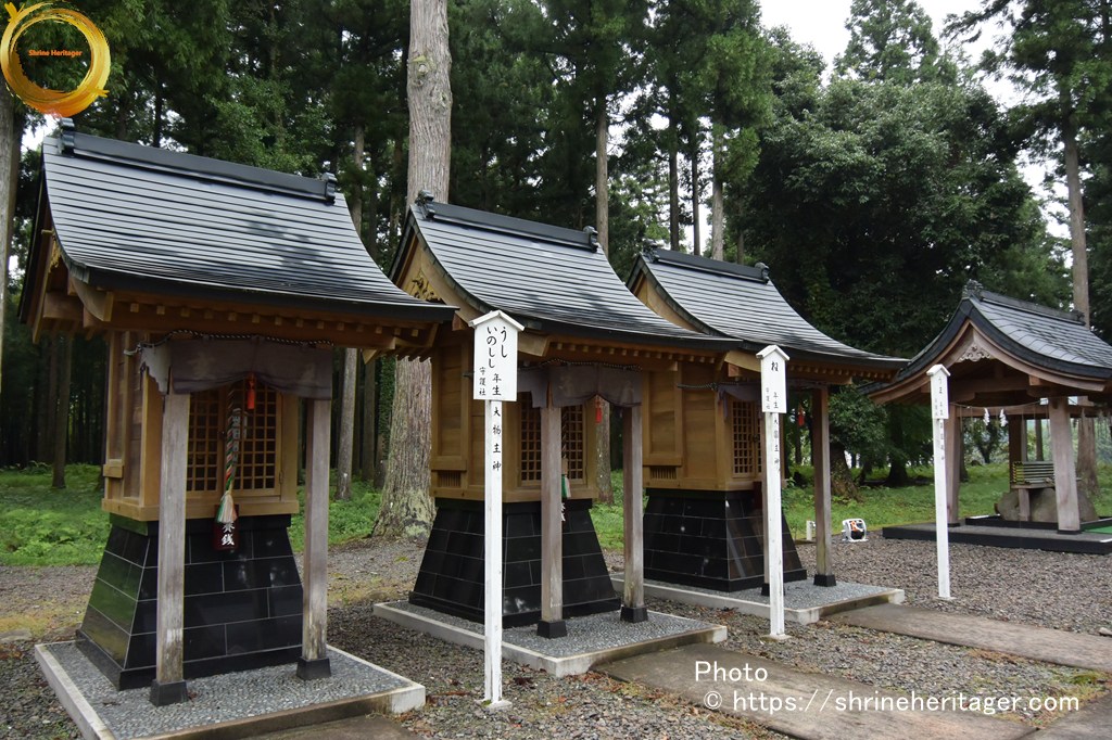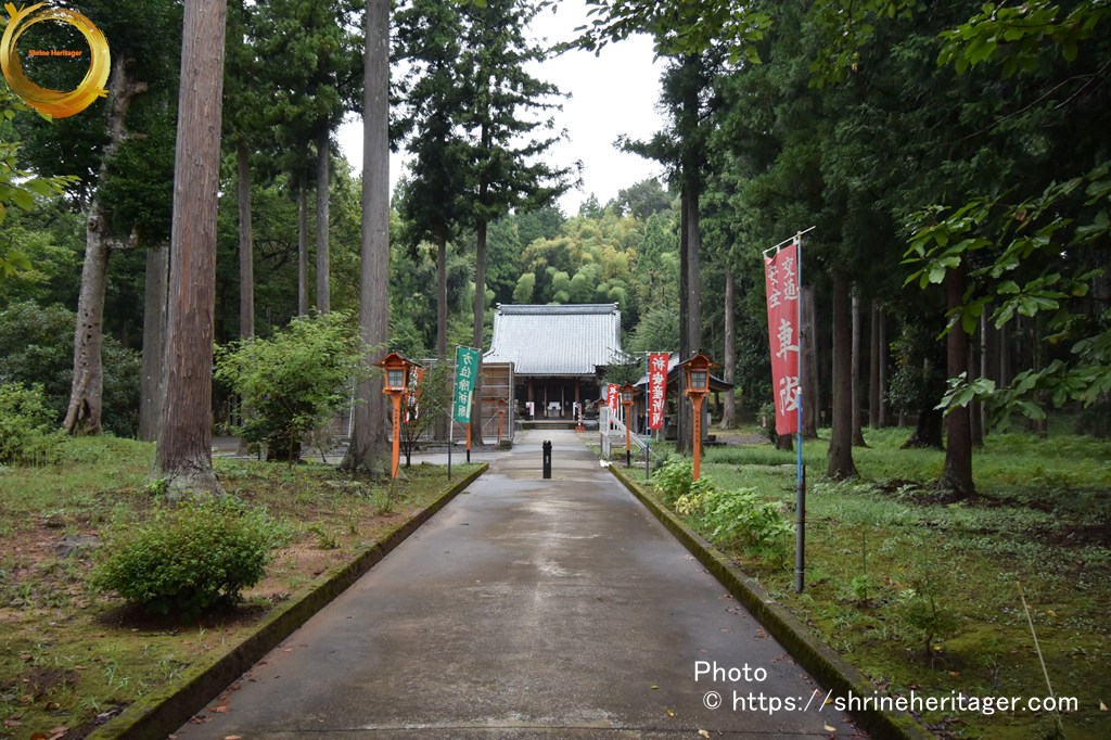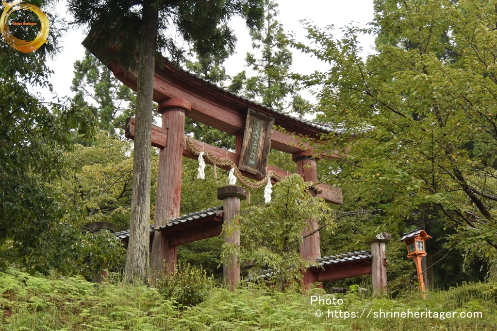 昭和 51年 7月 1日指定江戸時代前期の寛文九年(1669)に造営された二間の流れ造りの小社で、社殿部の三方を回廊が囲む、外陣が開放された中世の神社建築のおもむきをのこしています。