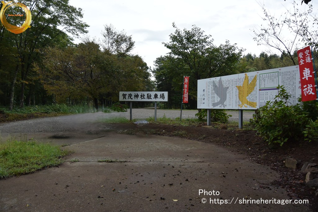 坂道を上がって行くと 福井市清水西小学校の裏手となって 賀茂神社の駐車場の案内板が見えてきます